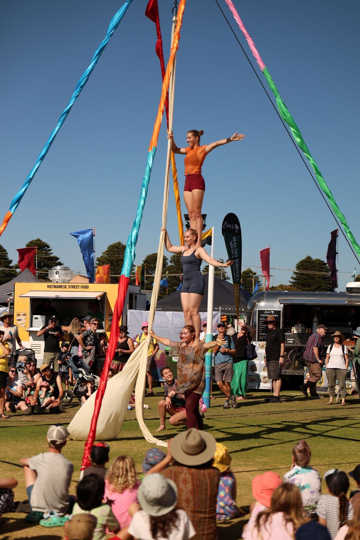 Lie on your back and watch birds and aerialists soar overhead, swim with LED jellyfish and chase their bubbles, wriggle your toes in the grass and imagine growing as tall as a stringybark gum. This 4 person circus show explores the joys of nature with plenty of moments for the audience to get up and play. Available for festivals, agricultural shows and touring.