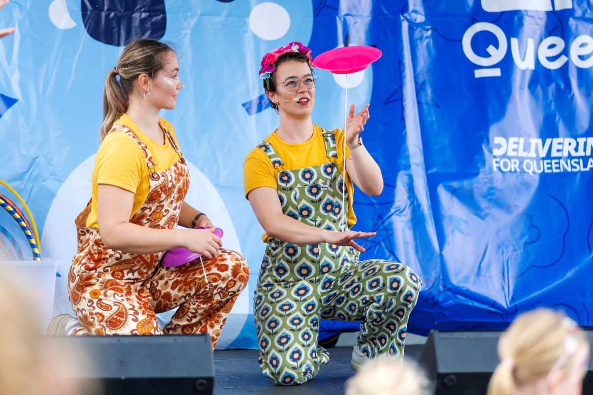 A two person, highly interactive circus show suitable for kids aged 4+. Featuring acrobatics, plate spinning, hula hooping and juggling plus heaps of moments for kids to get up and have a go!